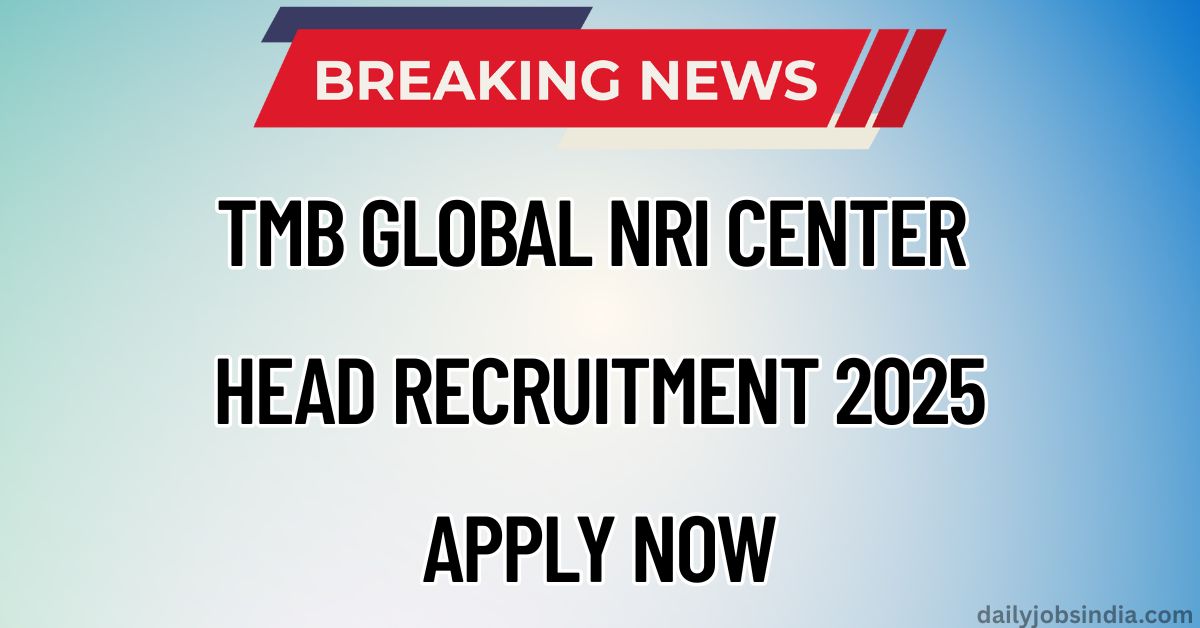 The TMB Global NRI Center Head Recruitment 2025 Notification PDF has been released on 25-06-2025 at tmbnet.in.